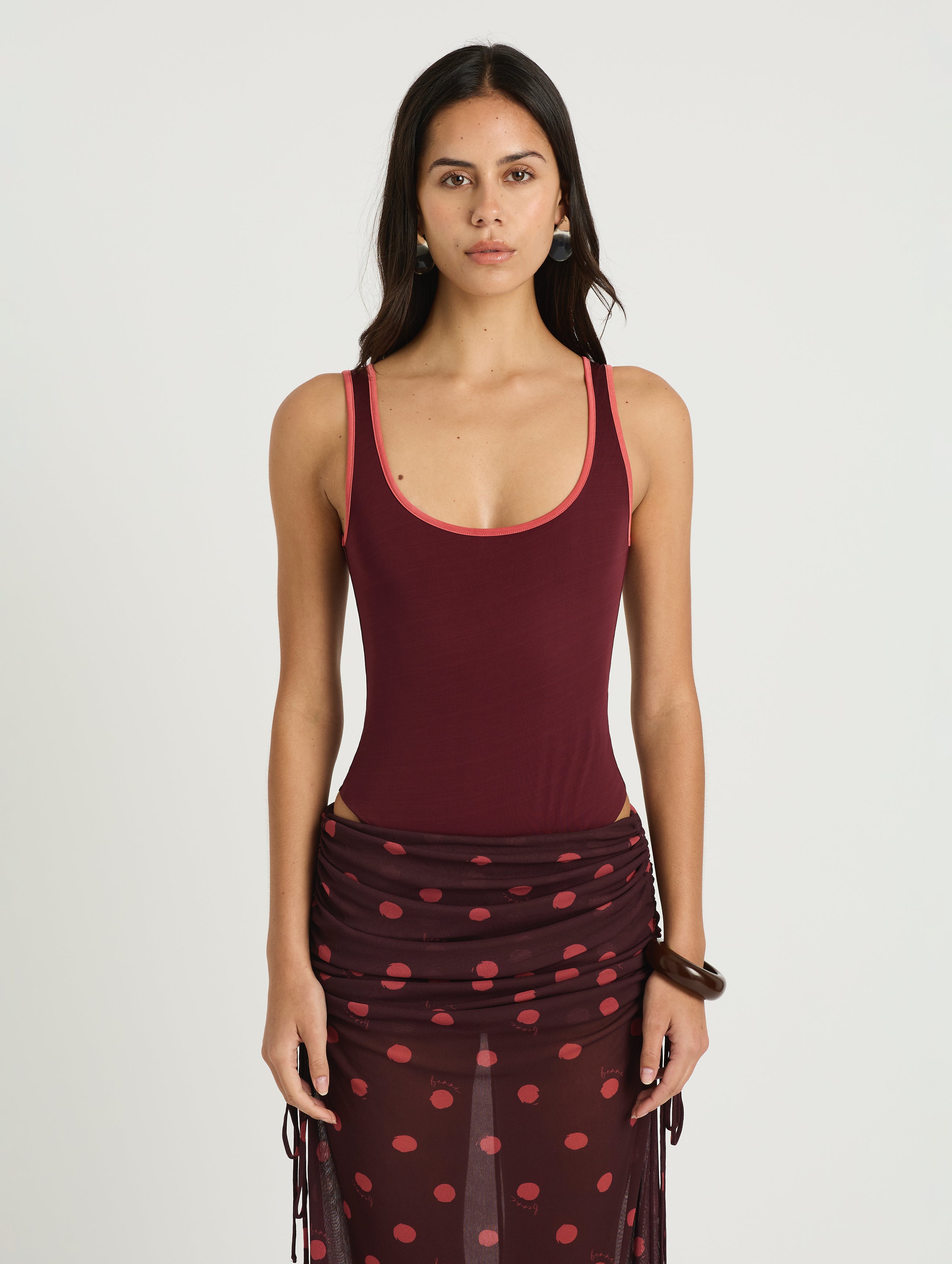 The Addison Bodysuit features a deep plunge neckline and a deep scoop back in a from-fitting silhouette.